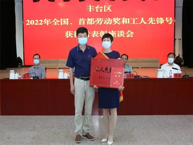 据了解,丰台区2022年有1人荣获全国五一劳动奖章,1个单位班组获得全国工人先锋号;3个单位荣获首都劳动奖状,16人荣获首都劳动奖章,6个单位班组荣获北京市工人先锋号。中共丰台区委副书记、党校校长底志欣等参会领导为获奖集体代表和个人颁奖。