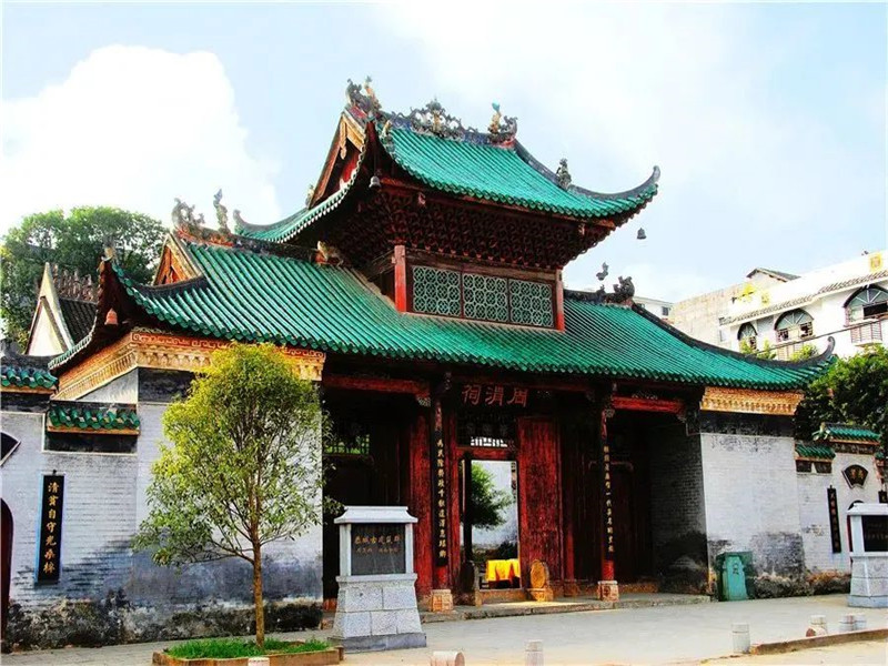 周渭祠,坐落于桂林市恭城瑶族自治县内,占地面积近1000平方米,建筑布局为戏台、楼门、大殿、后殿和左右厢房,是颇具明清古建筑特色的自治区级重点文物保护单位。作为廉政教育基地,周渭祠内着力从历史层面展示廉政文化,设置了中国历史上的清官、贪官等展厅,又集中展示古代廉政制度、廉政故事、典故、诗歌、美文等历史廉洁文化。教育基地还将历史文化与现代廉政文化教育对接起来,展示和介绍了中国共产党自建党以来,特别是在革命、建设、改革的重大历史关头和关键发展阶段,立党为公,执政为民,坚决有效惩治腐败和不断取得新的反腐倡廉成果,以及在新时代不断涌现的先锋楷模。