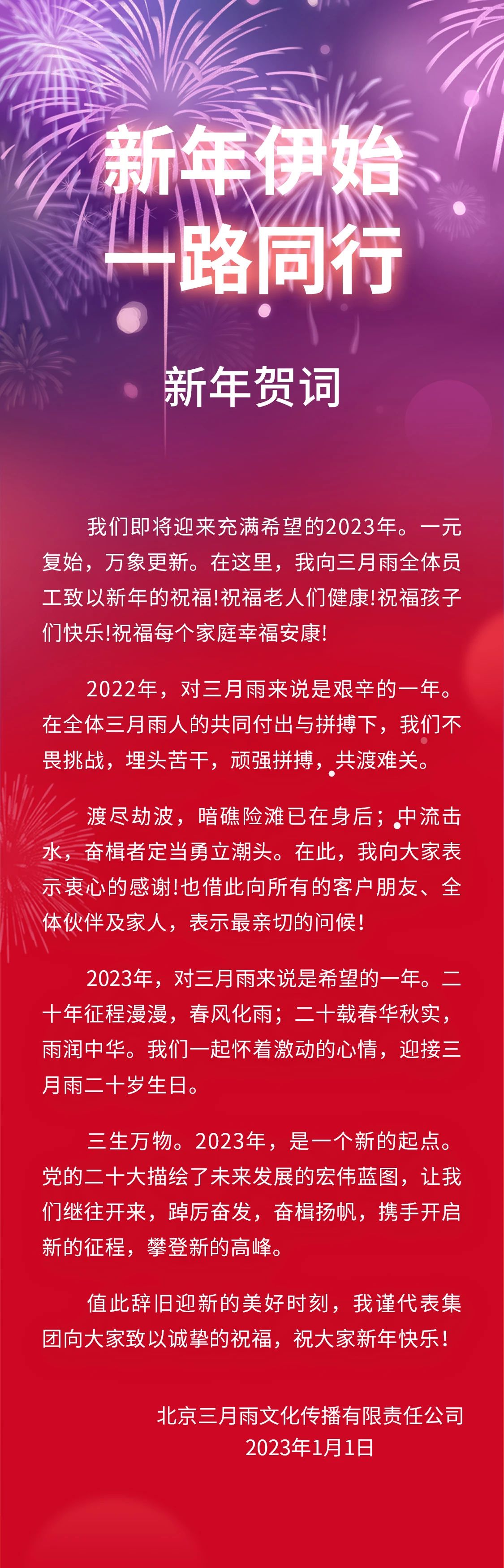 新年伊始 一路同行|北京三月雨2023年新年贺词