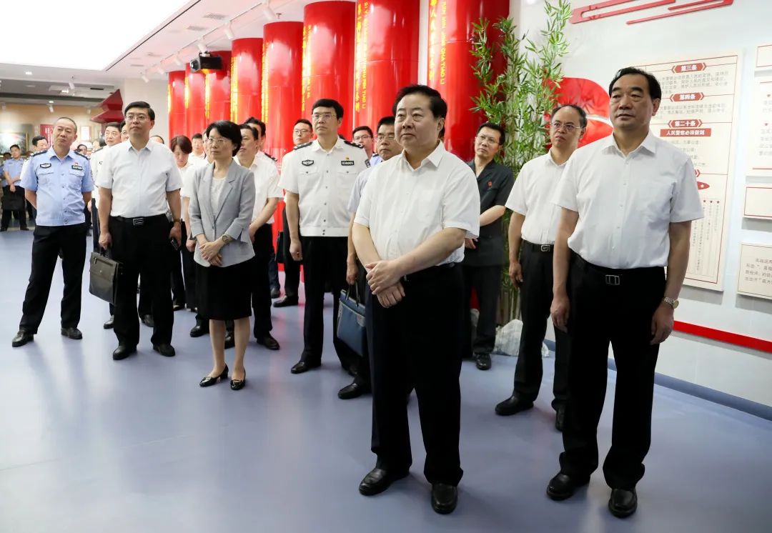 7月16日,全国政法队伍教育整顿试点办公室副主任、最高人民法院党组成员、政治部主任马世忠率领全国政法队伍教育整顿试点第一驻点指导组一行到徐州市公安局廉政教育基地参观调研。