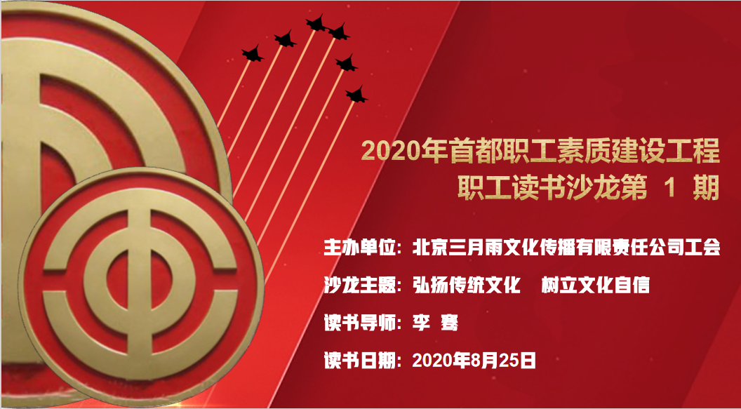 从2004年开始,北京市总工会,北京市教育委员会共同组织实施了首都职工素质建设工程,2020年,三月雨工会申报的《文化自信与民族复兴》和《精神的力量》两场读书沙龙,有幸入选了市总工会重点支持的110场“首都职工素质建设工程读书沙龙”项目。