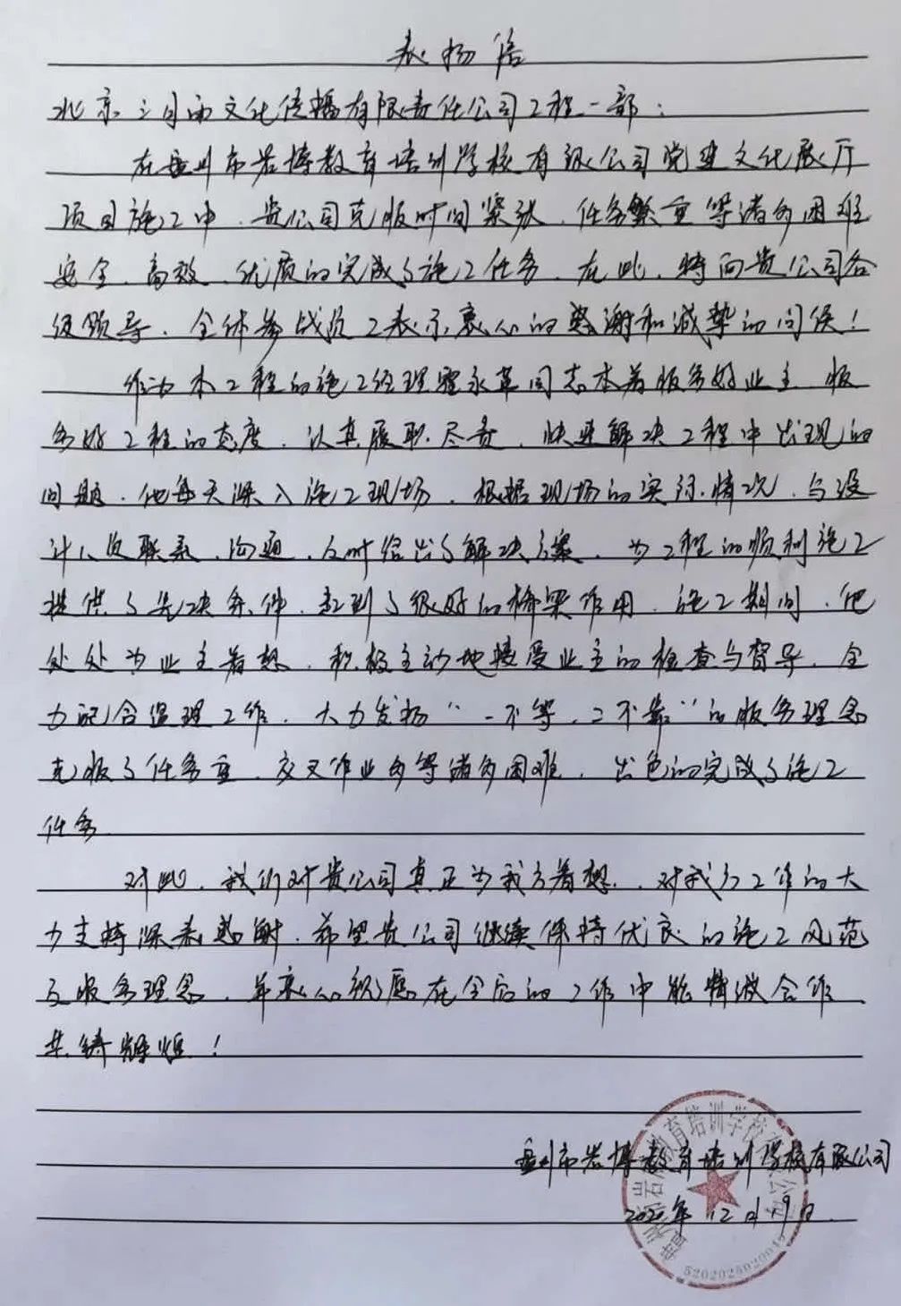 小小的一封表扬信,承载着客户单位对三月雨工作的肯定和信赖。朴实无华的句子、跃然纸上的真情,温暖着我们的心,也激励着我们继续前行。相信,改版建成后的岩博党建文化展厅,将开辟一个全新的教育阵地,为发挥党建引领、推动脱贫攻坚与乡村振兴有效衔接,做出新的贡献。