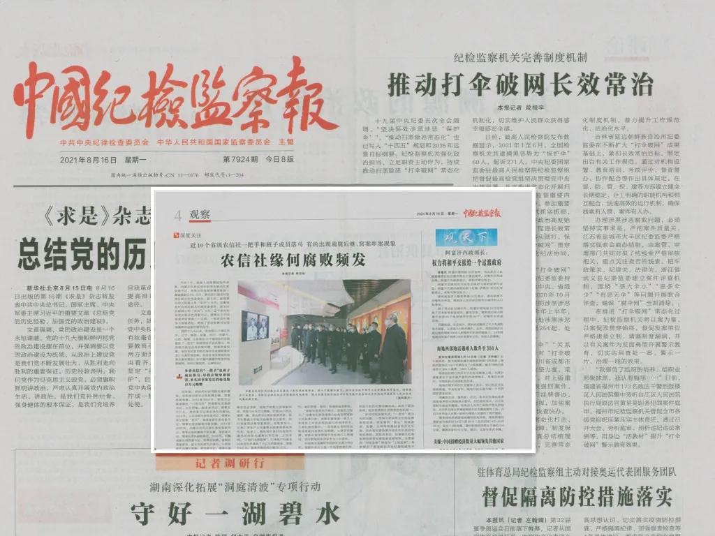 8月16日出版的《中国纪检监察报》第4版用较大篇幅对此进行了报道。